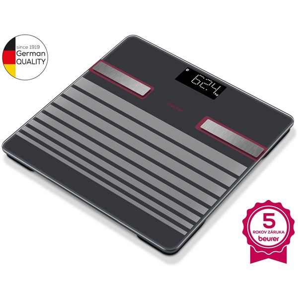 Diagnostické váhy od nemeckej spoločnosti Beurer vás sprevádzajú na ceste k ideálnej hmotnosti. Aby ste si udržali ideálnu hmotnosť, je dôležité poznať vlastné hodnoty tela a pravidelne ich sledovať. Osobná diagnostická Beurer BF451 je vybavená odolným tvrdeným bezpečnostným sklom s hrúbkou 6 mm a elektródami z brúsenej nehrdzavejúcej ocele, ktoré zaručujú presné a spoľahlivé merania. Automatické zapínanie a vypínanie uľahčuje používanie a šetrí energiu, pričom indikátor preťaženia upozorní, ak nosnosť prekročíte. Vďaka možnosti voľby jednotiek (kg, lb, st) a vysokému rozlíšeniu displeja sú výsledky vždy jasné a čitateľné.